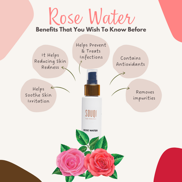 Voor mensen met een gevoelige huid of huidproblemen zoals roodheid, eczeem of rosacea, zijn de kalmerende voordelen van rose water een uitkomst. Rozenwater heeft natuurlijke ontstekingsremmende eigenschappen die roodheid helpen verminderen en een jeukende huid verzachten. Bij gebruik van Souqi gekoeld rozenwater op een katoenen pad ervaart men direct verlichting bij een geïrriteerd huidoppervlak. Het is een veilige en milde oplossing voor mensen die last hebben van huidreacties op chemische producten of agressieve reinigingsmiddelen.